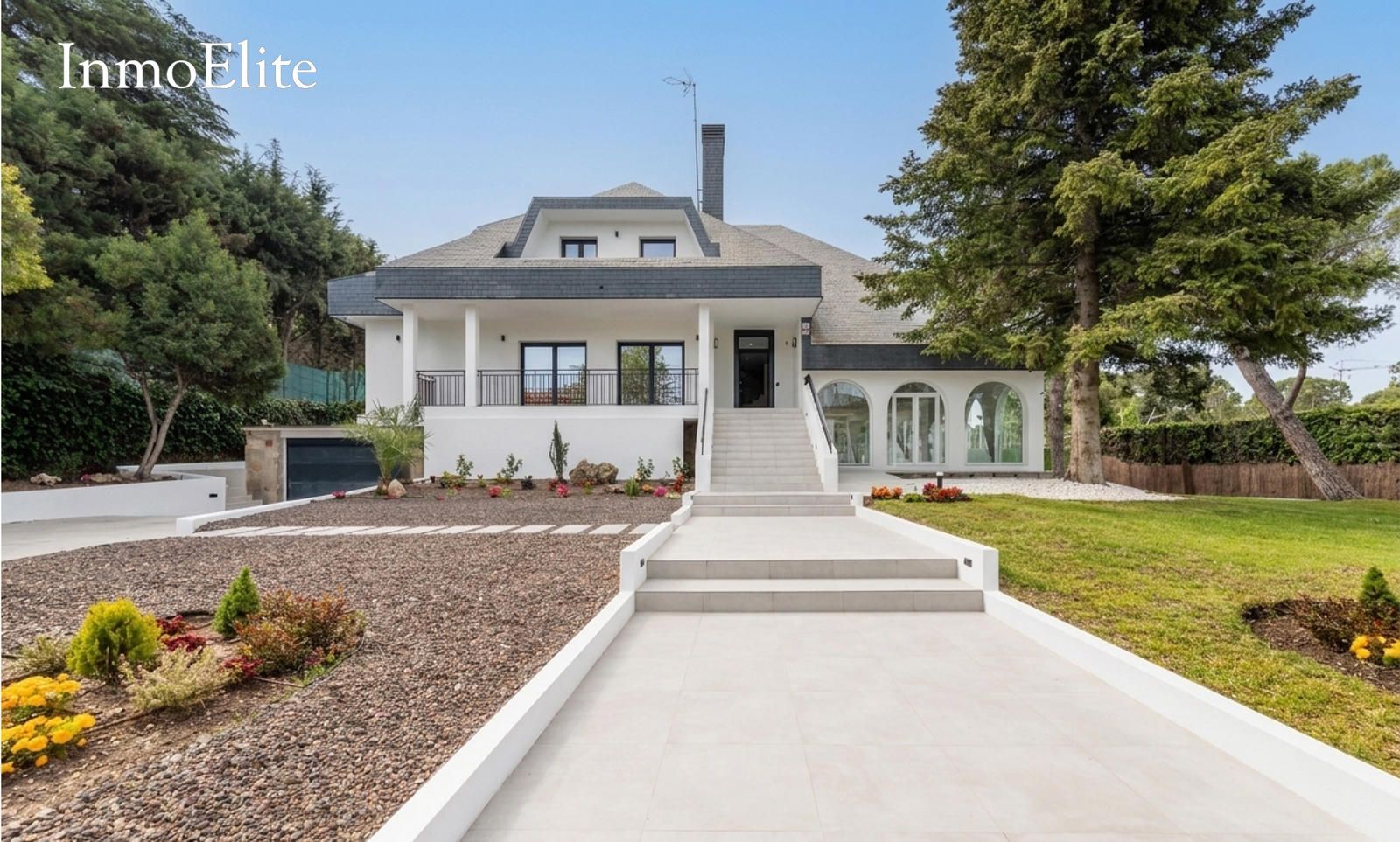 The relaxation area is a haven of peace. On the mezzanine level, there is a master suite with a dressing room and a private terrace. Next are three additional bedrooms with terraces, two of them en suite and one with a dressing room, and a full bathroom serving the fourth bedroom. This level provides access to a bright, open-plan attic with high wooden ceilings. On the main entrance mezzanine, the house features a spectacular glazed porch, ideal for year-round enjoyment. The basement level has natural light and includes a recreation room with access to a wine cellar, a laundry room, and two storage rooms. It also has a completely independent staff apartment. The property is complemented by a garage with space for five vehicles, a guest toilet, and an extra security feature: a vaulted ceiling. It also features pre-installed electric vehicle chargers and solar panels. Visit this luxury property with InmoElite Propiedades. Don't miss this unique opportunity. For more information and to schedule an appointment, contact us.