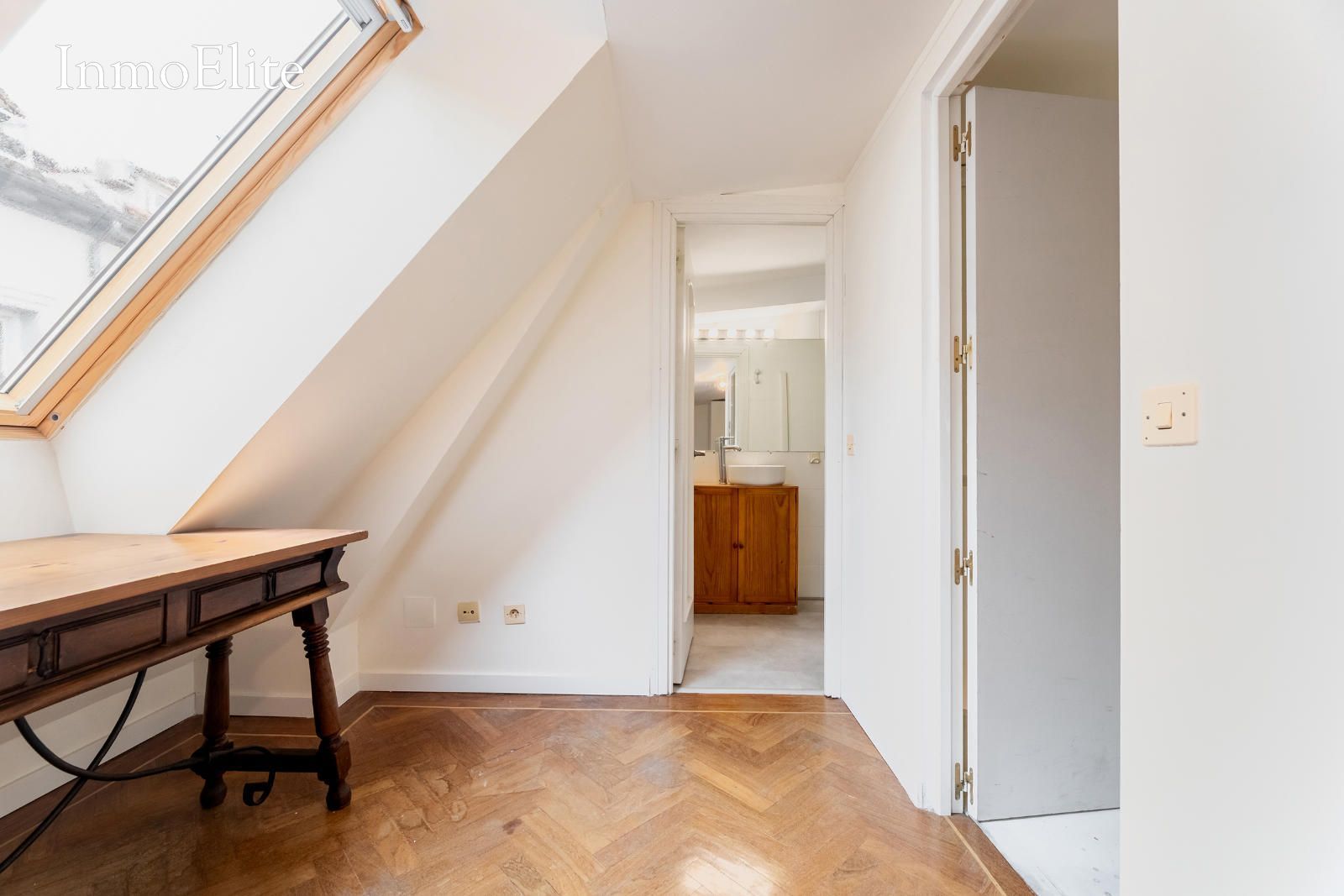 La planta alta abuhardilla cuenta con otra estancia que puede destinarse a un tercer dormitorio o despacho y cuarto de baño completo. Dicha estancia dispone de ventanas velux, priorizando la luz natural.