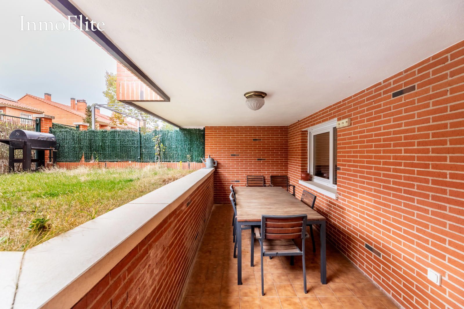 Sus 40 m² de jardín permiten disfrutar del exterior sin renunciar a la privacidad, mientras las zonas comunes del complejo brindan piscina, áreas verdes y pistas multiusos para actividades en familia. La vivienda se beneficia de calefacción de gas natural, armarios empotrados y cocina amueblada, todo pensado para un estilo de vida práctico y confortable. En su interior destacan el suelo de madera y las baldosas, con una distribución que facilita la circulación entre estancias.