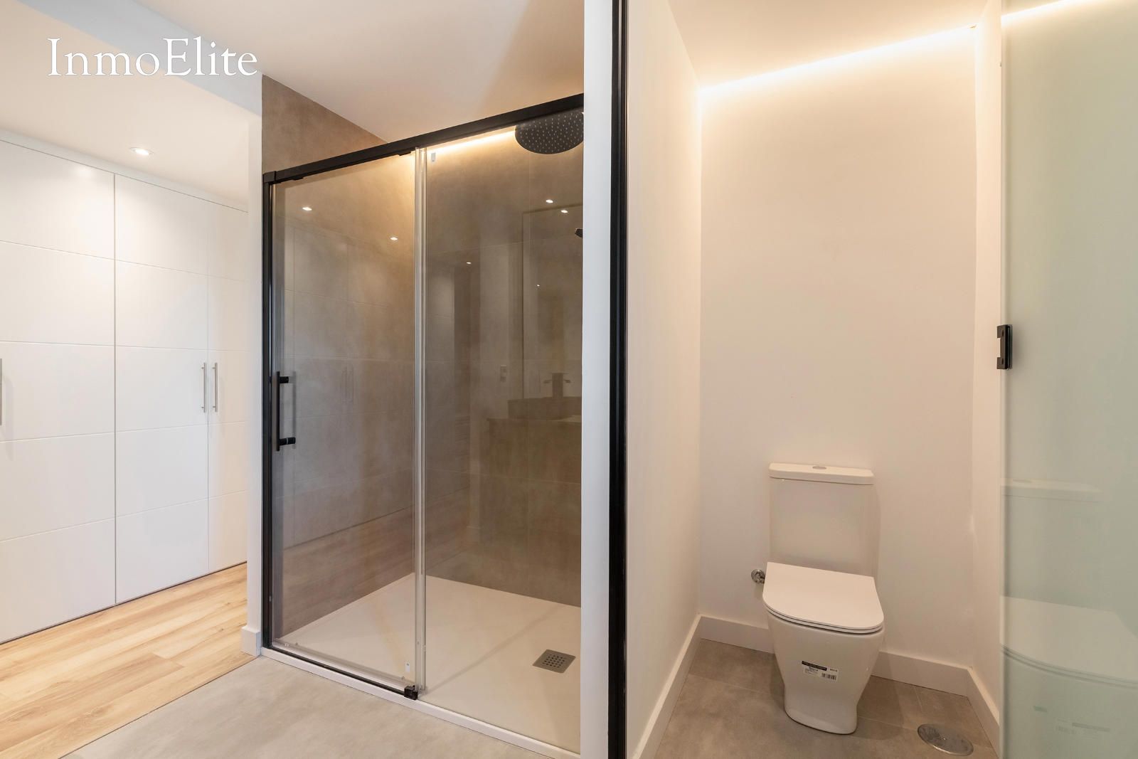 La zona social se completa con un aseo de cortesía y un segundo salón- comedor orientado al sur, con vistas al jardín y la piscina, que se integra armoniosamente en una cocina de diseño en isla y electrodomésticos de alta gama. Desde aquí se accede directamente al exterior, la zona chill-out, donde podrás disfrutar de una partida de pádel, gracias a su pista de césped artificial, y relajarte dándote un baño en su piscina privada, con vestuario y baño completo.