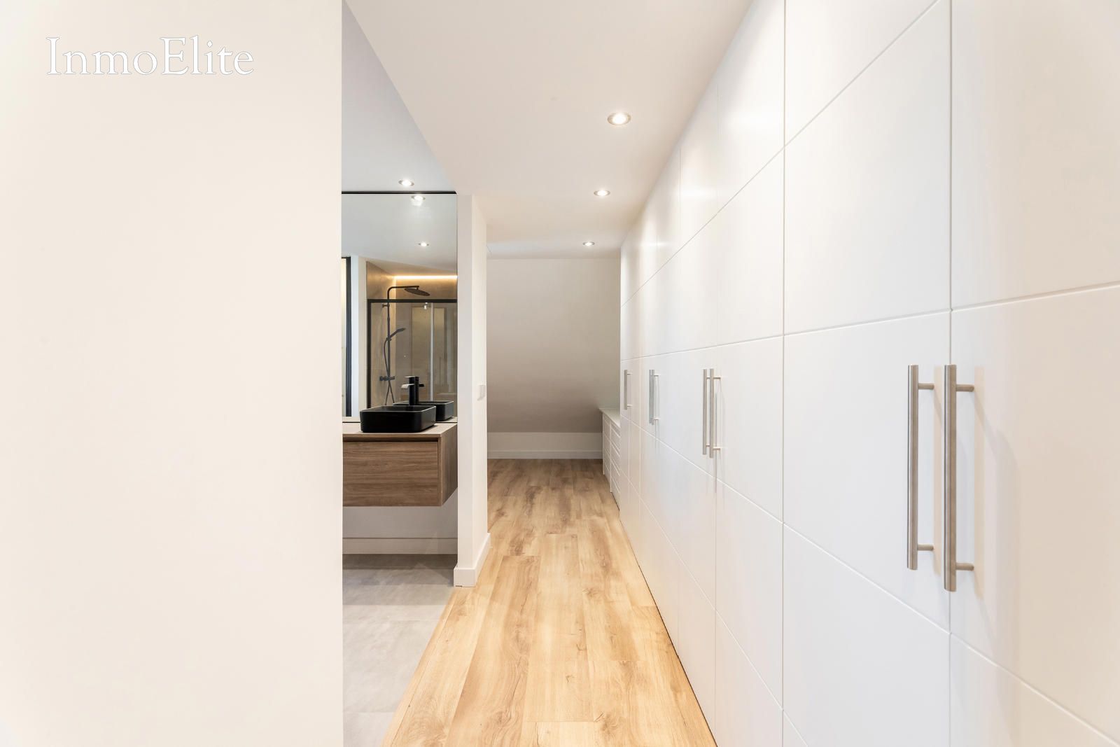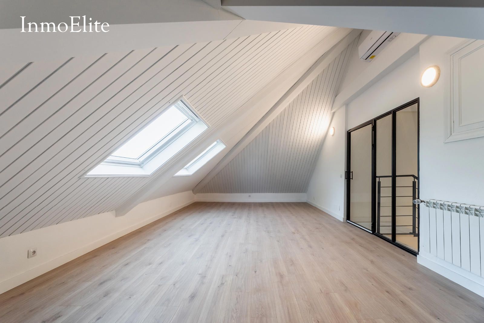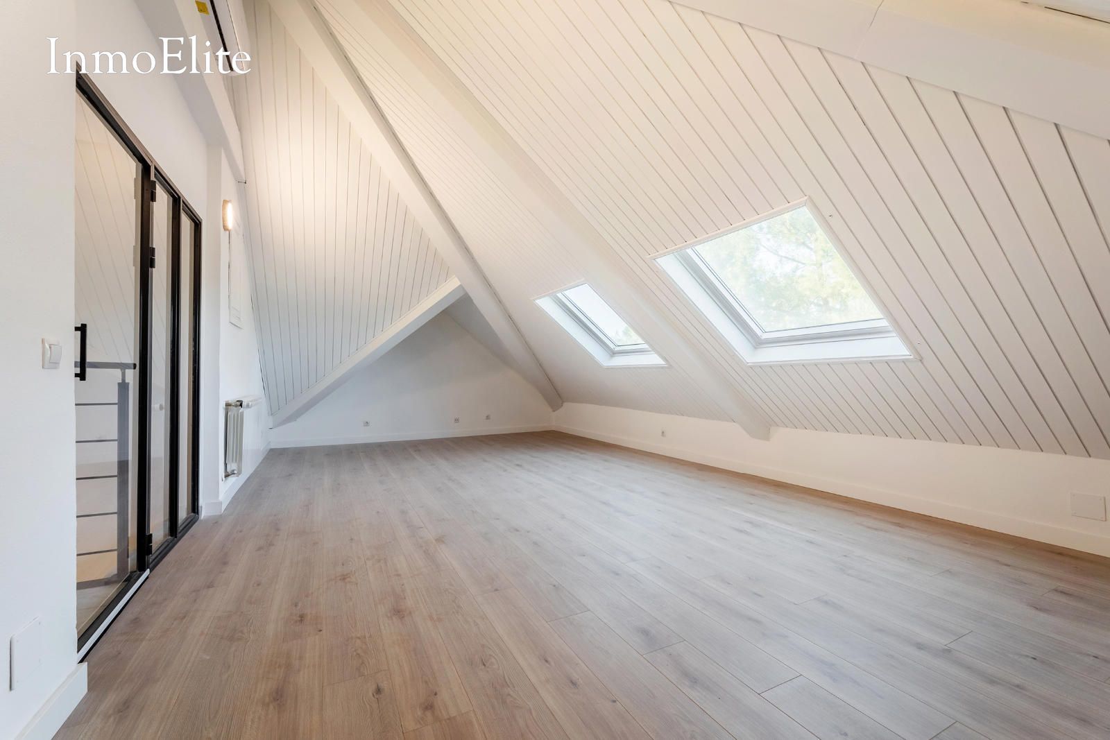 La zona de descanso es un refugio de paz. En la entreplanta, encontramos una master suite con vestidor y terraza privada. A continuación se encuentran tres dormitorios adicionales con terraza, dos de ellos en suite y uno con vestidor, y un cuarto de baño completo que da servicio al cuarto dormitorio. Este nivel da acceso a una luminosa buhardilla diáfana con techos altos de madera.