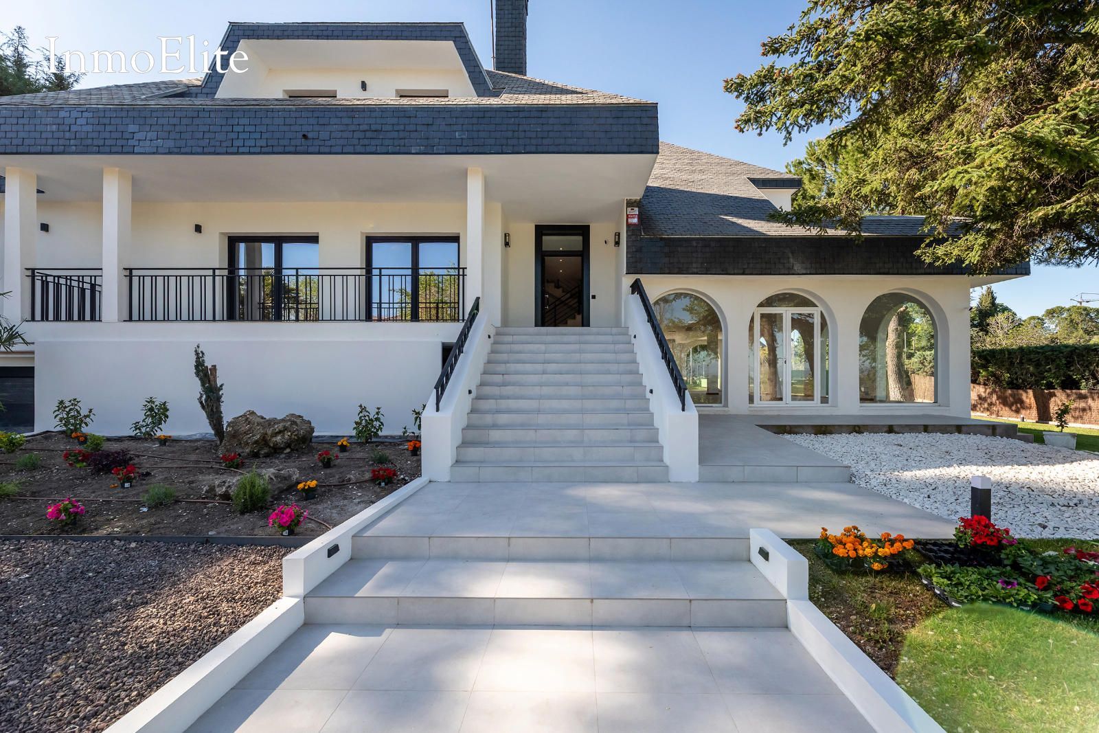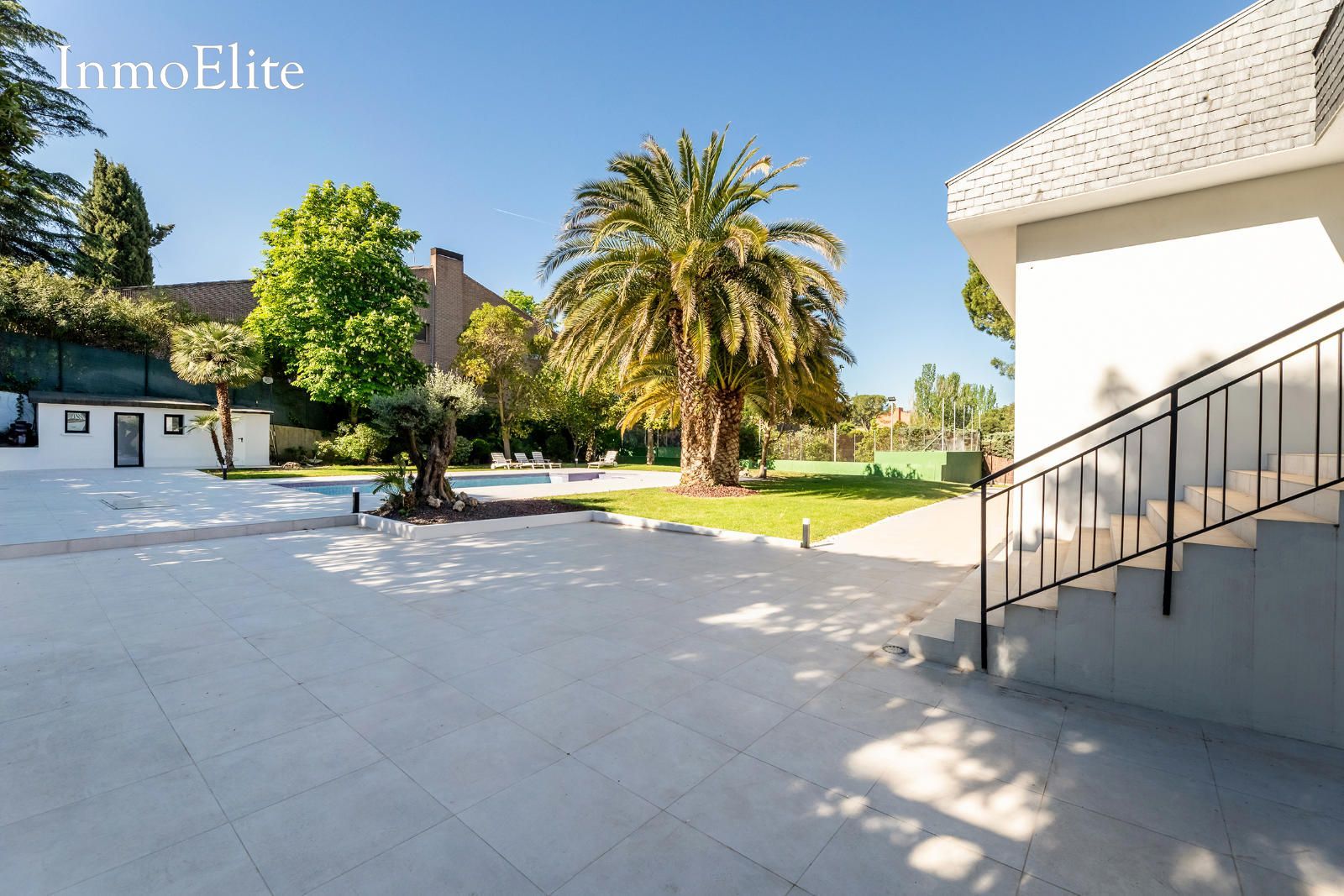 Ubicado en la exclusiva zona de Somosaguas, Pozuelo de Alarcón, este imponente chalet independiente de 1.200 m², situado sobre una parcela de 2.563 m² ofrece privacidad, seguridad y un diseño pensado para el confort diario.