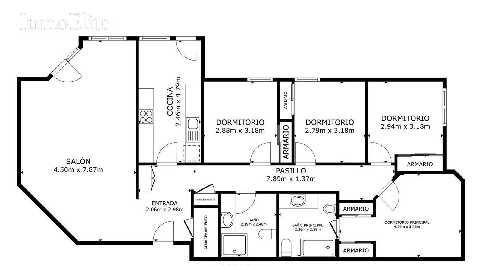 En la zona de descanso, encontramos el dormitorio principal en suite con armario empotrados y un cuarto de baño completo con plato de ducha. Además, dispone de tres dormitorios, todos ellos exteriores y con armarios empotrados, que comparten un segundo cuarto de baño completo. Adicionalmente, la propiedad incluye plaza de garaje y trastero para almacenaje de enseres.