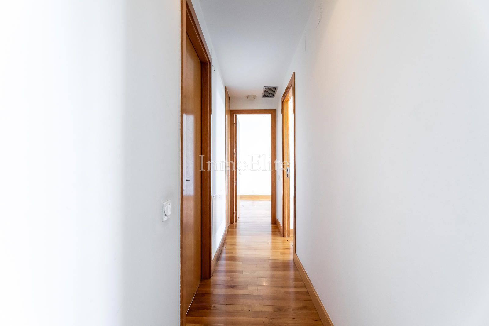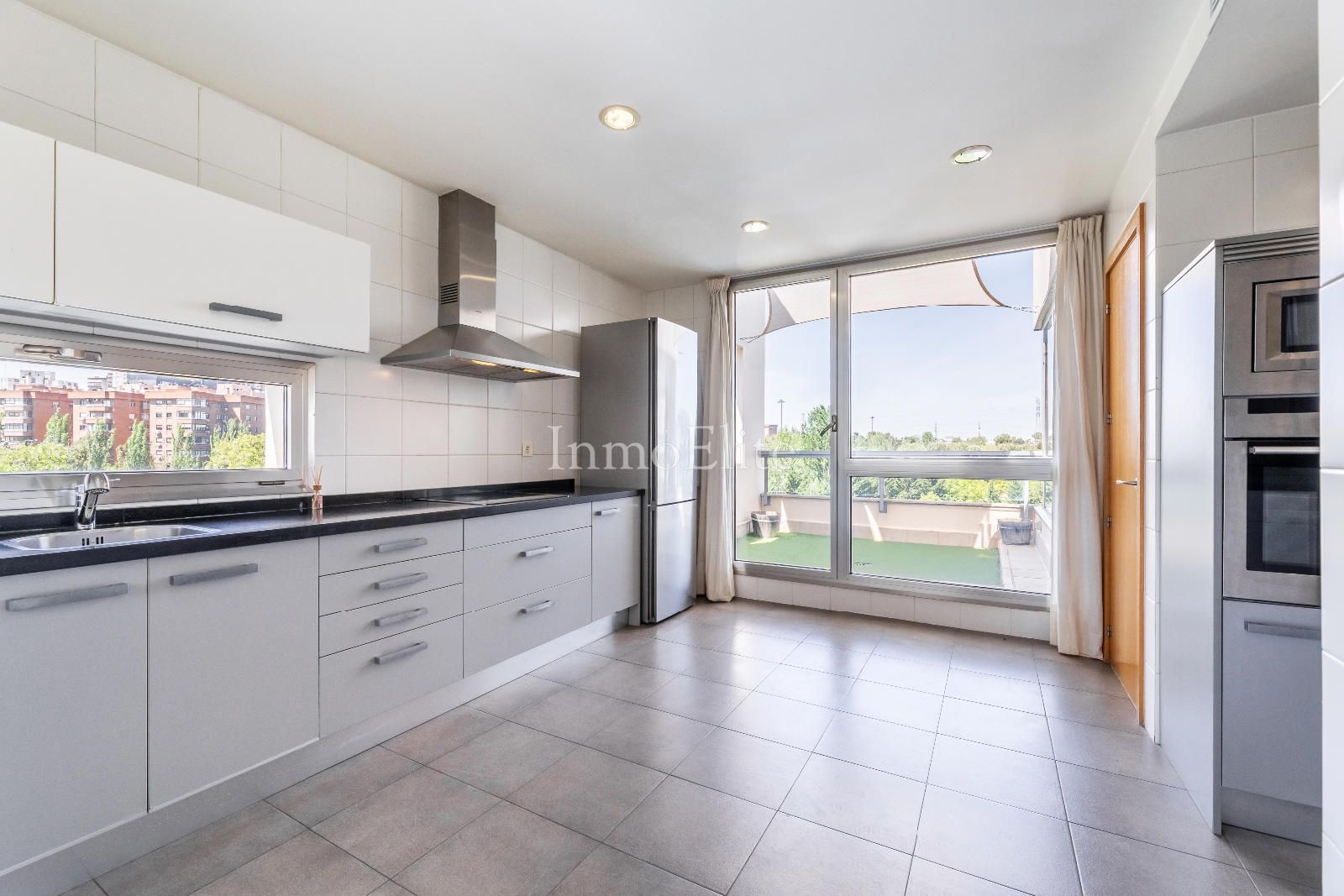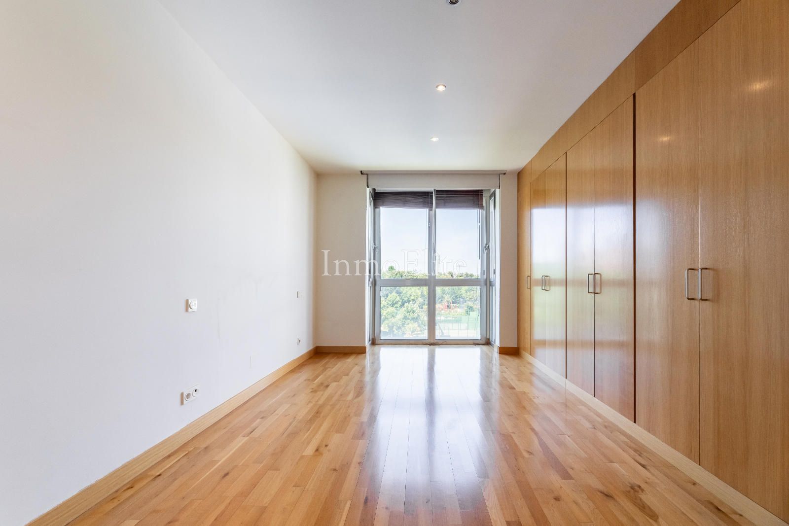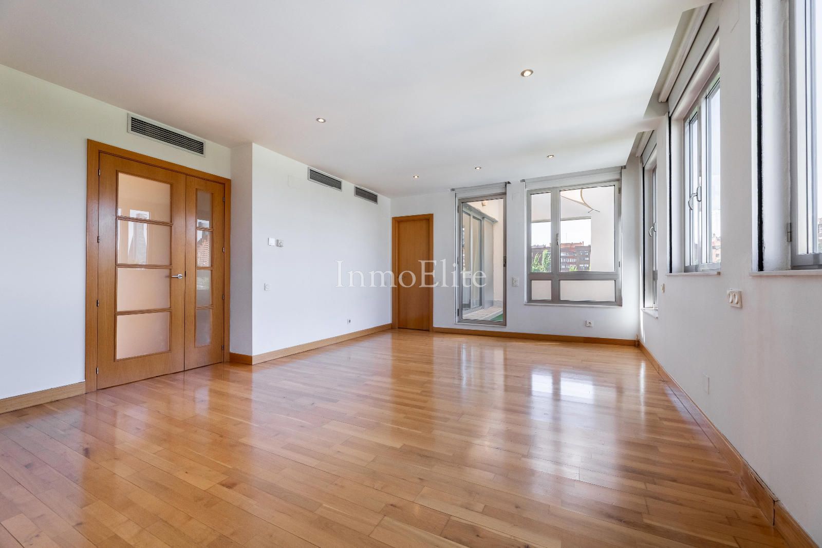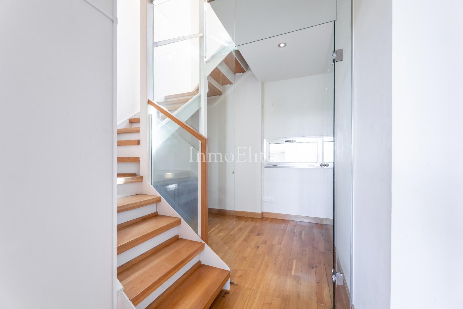 En la planta superior encontramos un amplio hall que puede ser aprovechado para una estancia adicional dando acceso a una increíble terraza solarium a dos alturas con piscina privada. Una terraza que destaca por su privacidad y vistas panorámicas a las Cuatro Torres de Madrid.