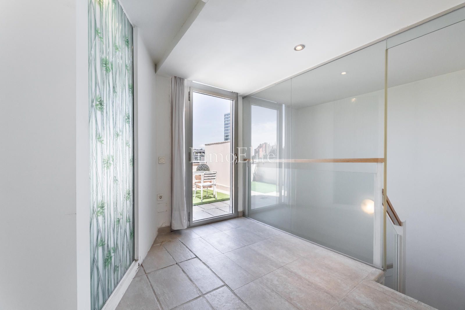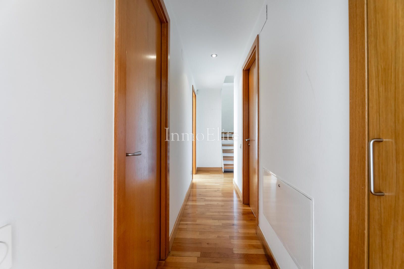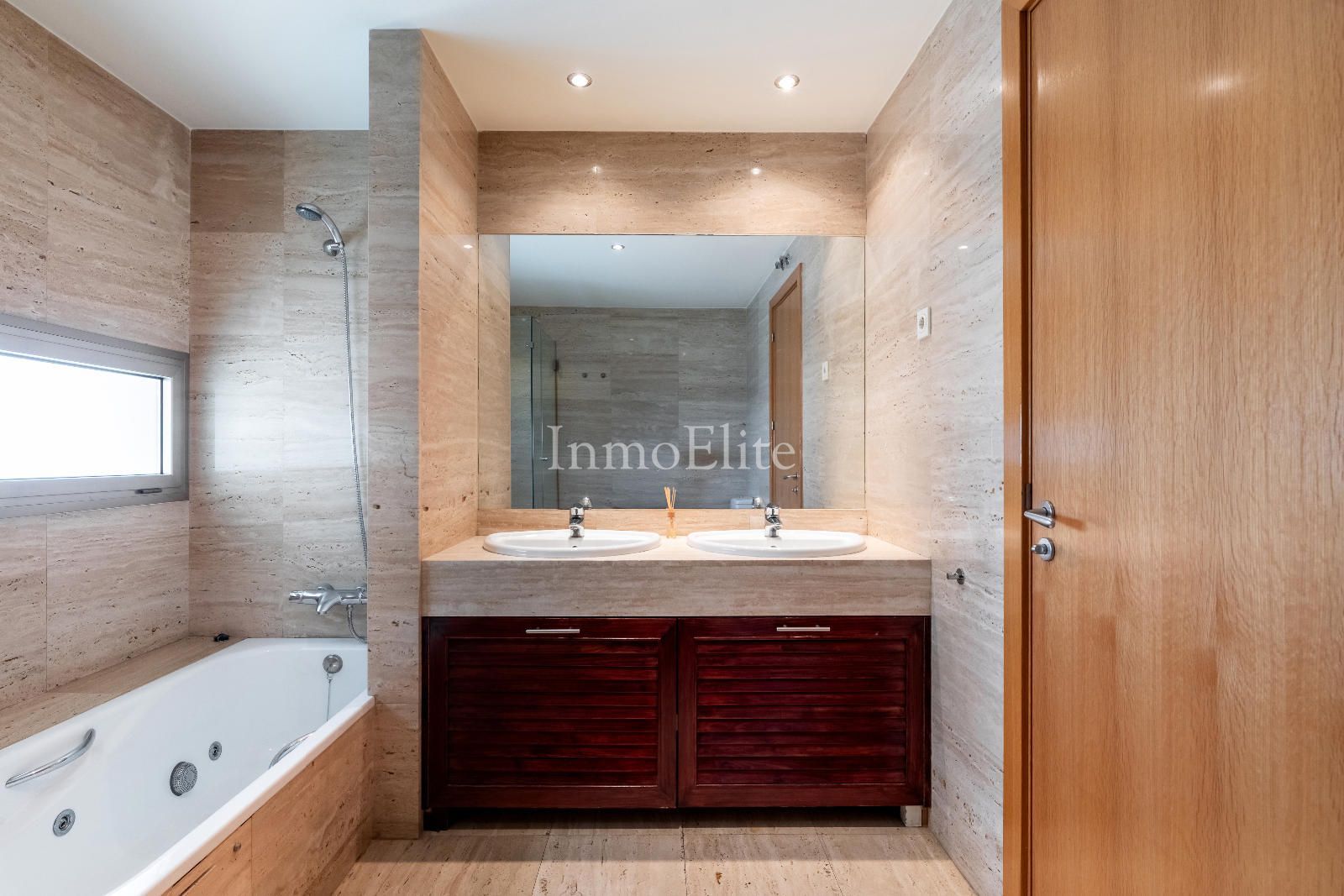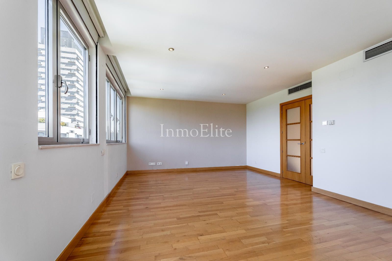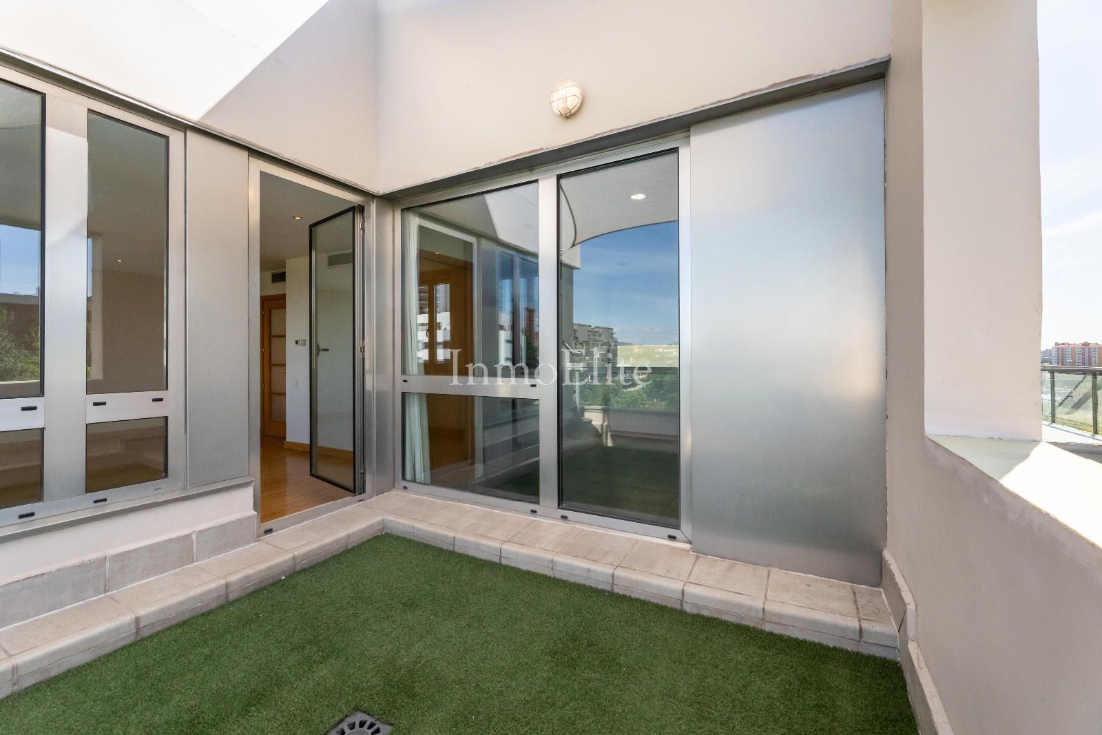 En la planta superior encontramos un amplio hall que puede ser aprovechado para una estancia adicional dando acceso a una increíble terraza solarium a dos alturas con piscina privada. Una terraza que destaca por su privacidad y vistas panorámicas a las Cuatro Torres de Madrid.