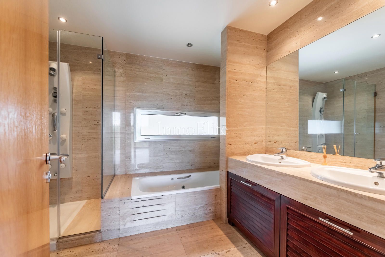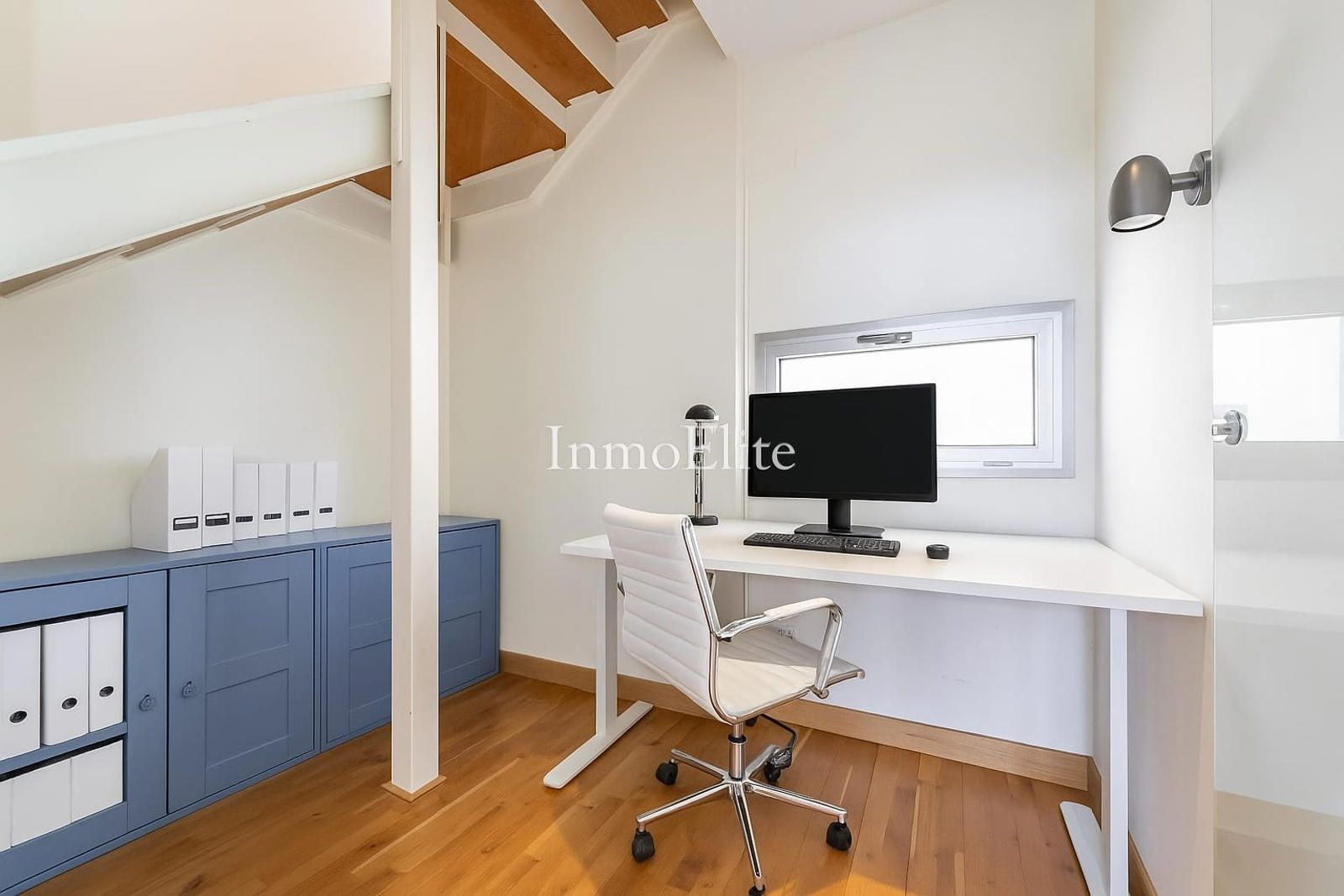 En planta baja un amplio hall aprovechado como despacho con puerta acristalada da acceso a 3 amplios dormitorios y cuarto de baño exterior con ducha. El dormitorio principal en suite destaca por su bonito ventanal, sus amplios armarios empotrados con luz interior, y cuarto de baño exterior con ducha y bañera de hidromasaje.