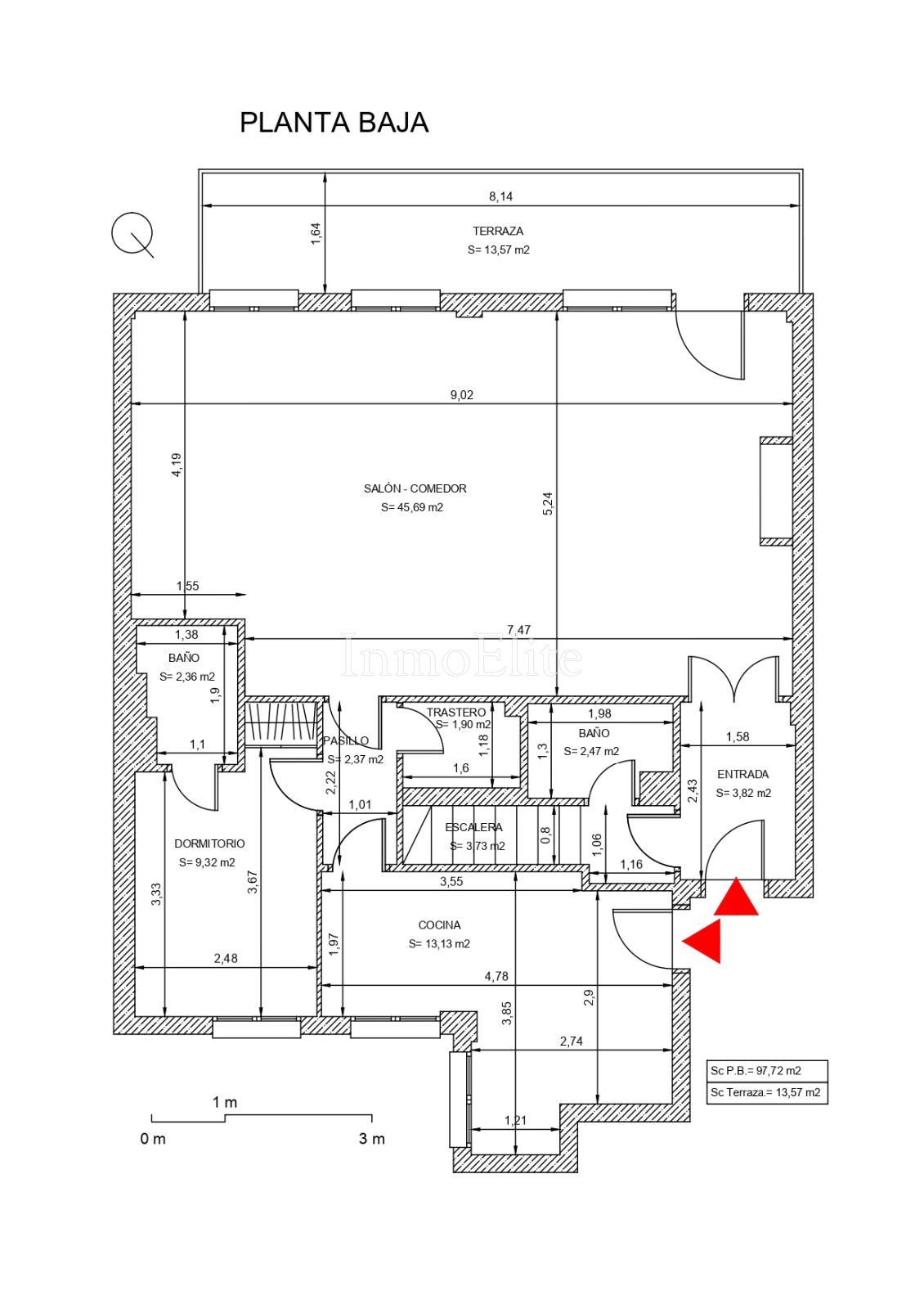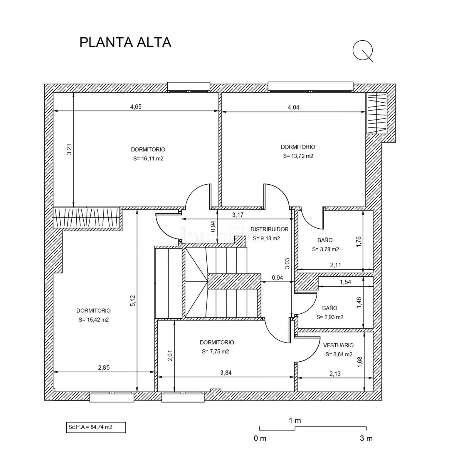 La planta alta alberga una amplia suite principal con cuarto de baño con bañera y aire acondicionado, creando un refugio privado para los propietarios. Completan la distribución tres dormitorios de buen tamaño, uno de ellos con vestidor, y un segundo cuarto de baño de uso común para estos dormitorios. El diseño aprovecha al máximo la luz natural y ofrece distribución clara entre zonas de descanso y de uso diario. Cada habitación cuenta con soluciones de almacenamiento y acabados consistentes para mantener el orden sin sacrificar estilo.