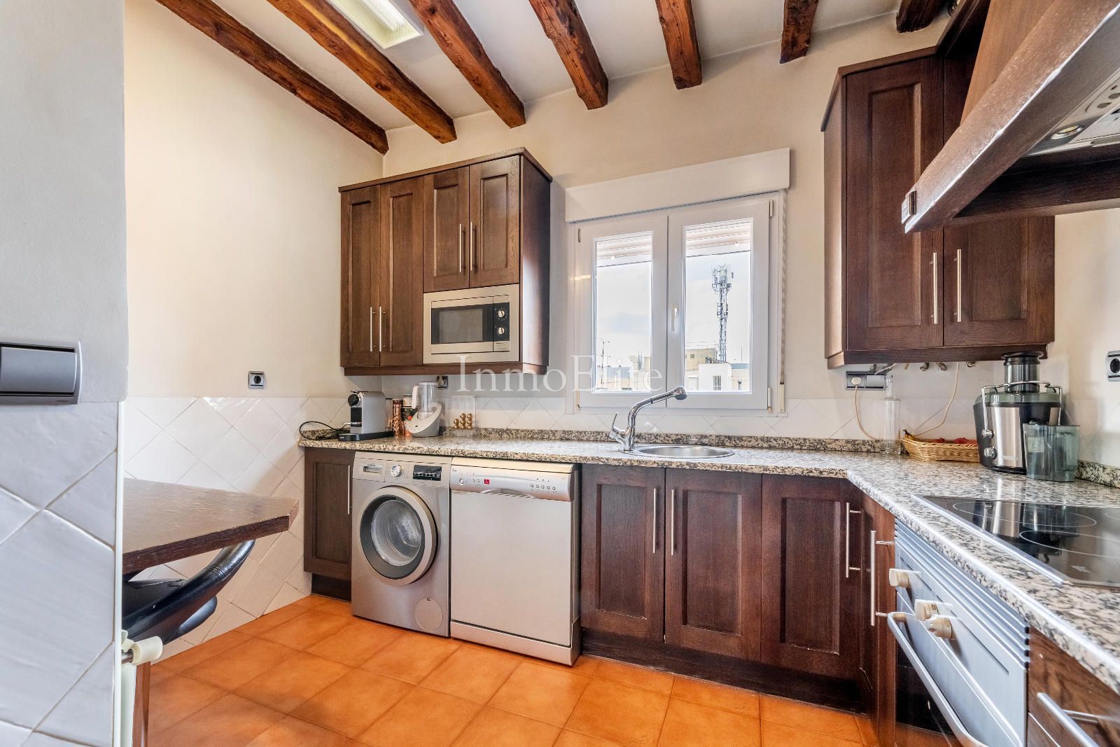 La vivienda cuenta con 70m² aproximadamente, combinando el encanto de las vigas de madera originales con un diseño contemporáneo. La vivienda se distribuye de manera funcional y acogedora: en la planta principal se encuentra el salón, la cocina independiente totalmente equipada y un cuarto de baño con ventana exterior.